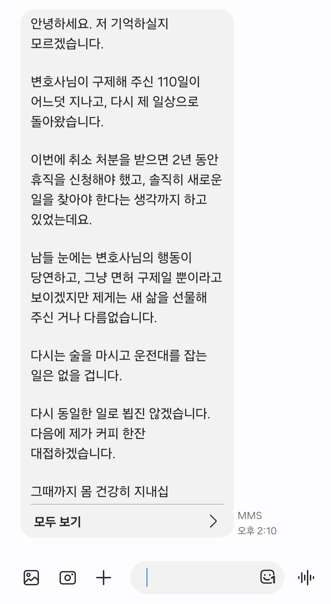 변호사님이 구제해 주신 110일이 어느덧 지나고, 다시 제 일상으로 돌아왔습니다.